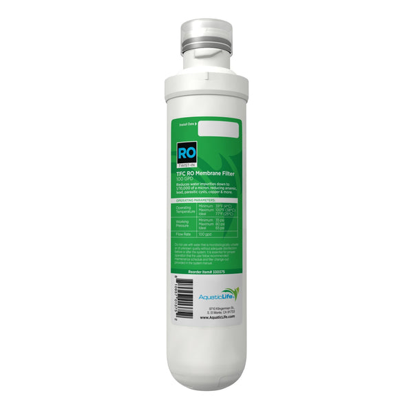 The 100 GPD Twist-In 4-Stage RO & DI Filtration Unit is equipped with three stages of filtration. Stage 1 - 5-Micron Sediment Filter Cartridge - This is the first line of defence which traps in sediment as well as particular matter like dirt, slit and rust. Replace every 6 months. Stage 2 - Carbon Block Filter Cartridge-This is the second line of defence which conditions the water while reducing chlorine by up to 99%. Replace every 6 months. Stage 3 - Reverse Osmosis Membrane Filter Cartridge - This is the third line of defence which reduces Total Dissolved Solids like arsenic, lead, parasitic cysts, copper and more to 1/10,000 of a micron. Replace every 1 to 2 years. Stage 4 - Mixed Bed Color Changing Resin Deionization Cartridge - This is the final line of defence which assures that any left over Total Dissolved Solids are filtered out completely. Replace when resin changes color entirely to amber.