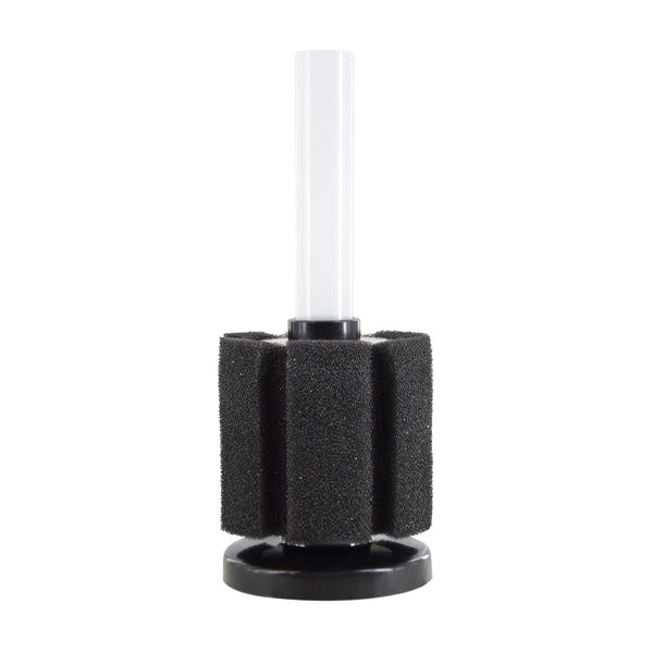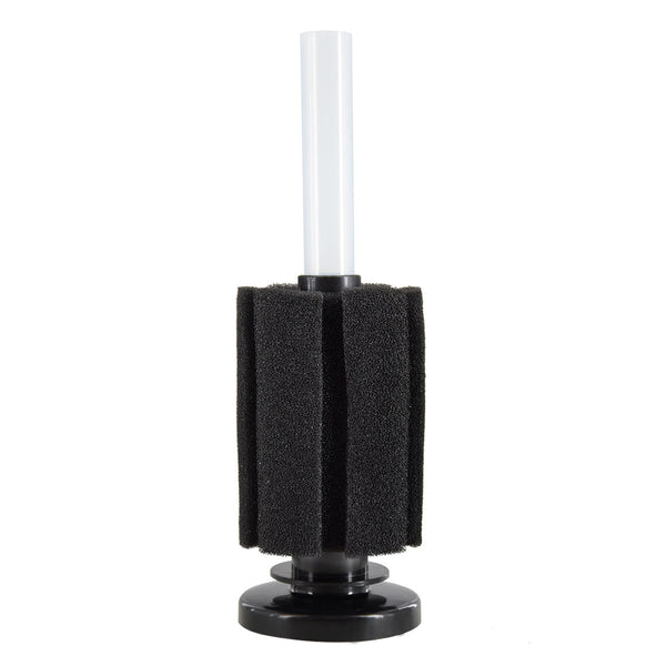 The Seapora Breeder Sponge Filter is designed for applications requiring gentle, low-flow filtration. Ideal for breeding, fry, quarantine and shrimp aquariums, this easy-to-use filter provides superior mechanical and biological filtration. It can be driven by an air pump or powerhead, and is suitable for freshwater and marine use. Suitable for larger sized aquariums (30 Gallons and higher). When fully assembled, the unit boasts a weighted base for added stability and has a maximum height of 9.25 inches and a diameter of 4.7 inches.